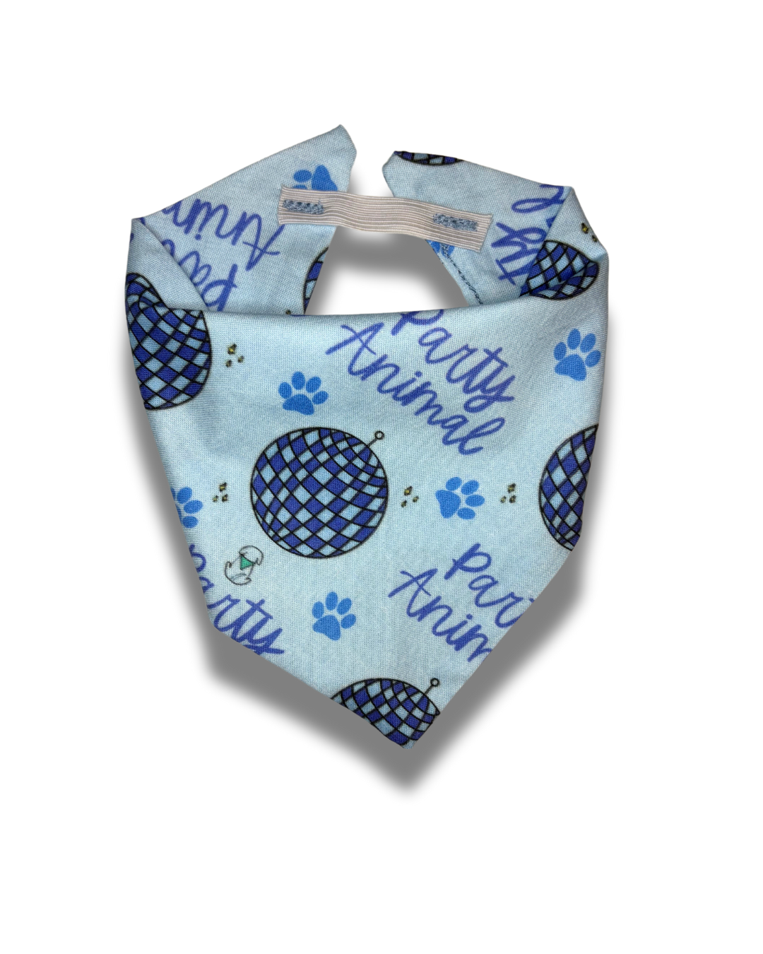 Turn heads at the dog park with our "Party Animal" blue disco ball dog bandana—featuring a comfortable elastic slip-on design, this fun and stylish pet accessory is perfect for dogs who have a bit of a wild side but still want Instagram-able looks!